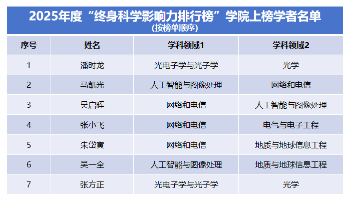 学院20人次入选2025年度全球 前2%顶尖科学家榜单