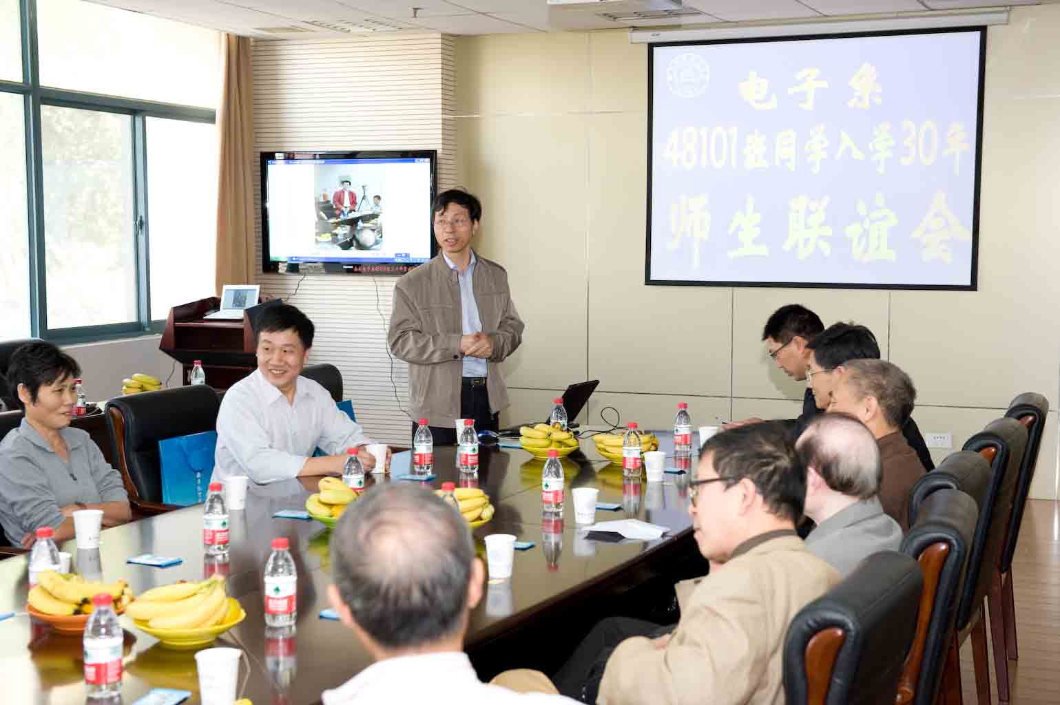 2011年10月15日上午,在明故宫校区12号楼205会议室,英国365集团公司举行了48101班校友返校座谈会。来自48101班的近30位校友、学院党委书记王奇峰、常务副院长周建江等院领导,戴明桢、蒋璇等学院老教授以及48101班当年的部分任课教师出席了活动。