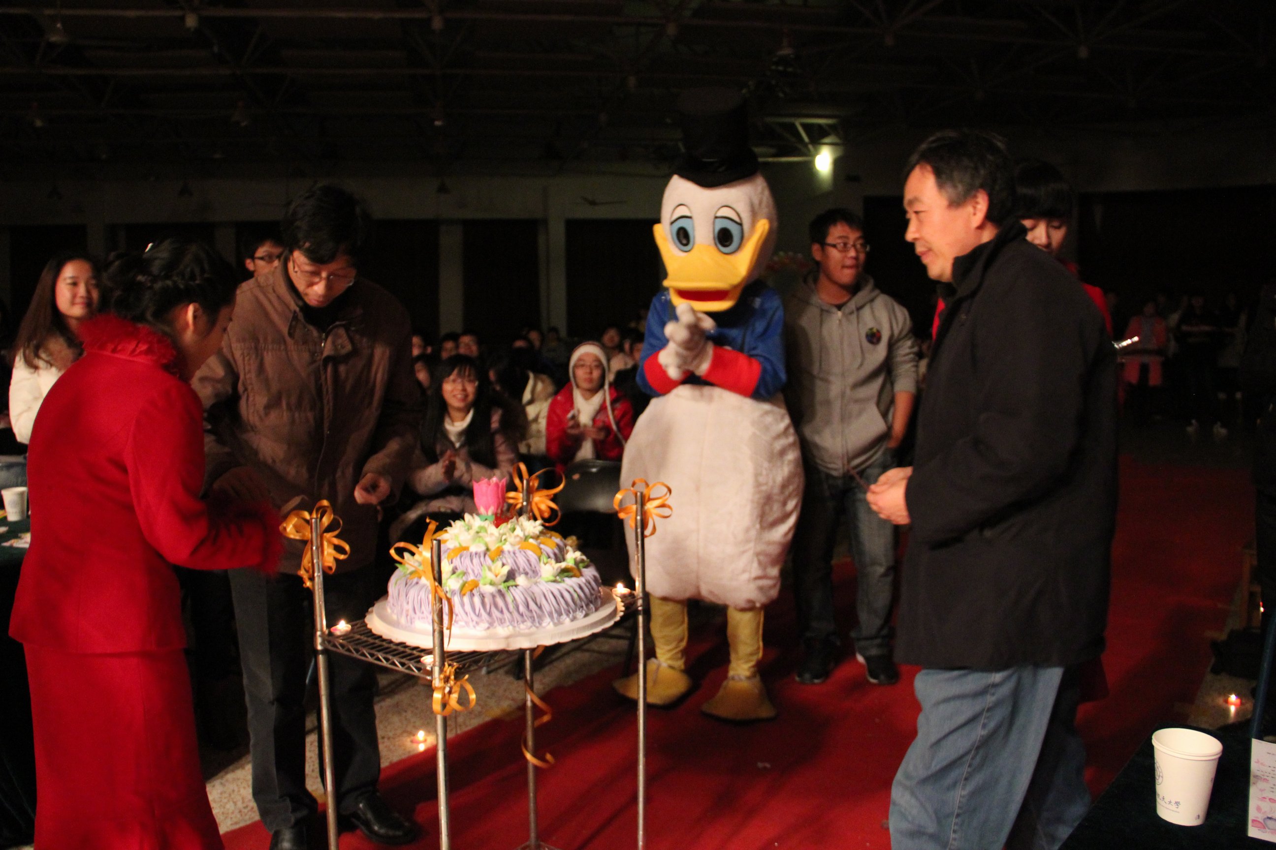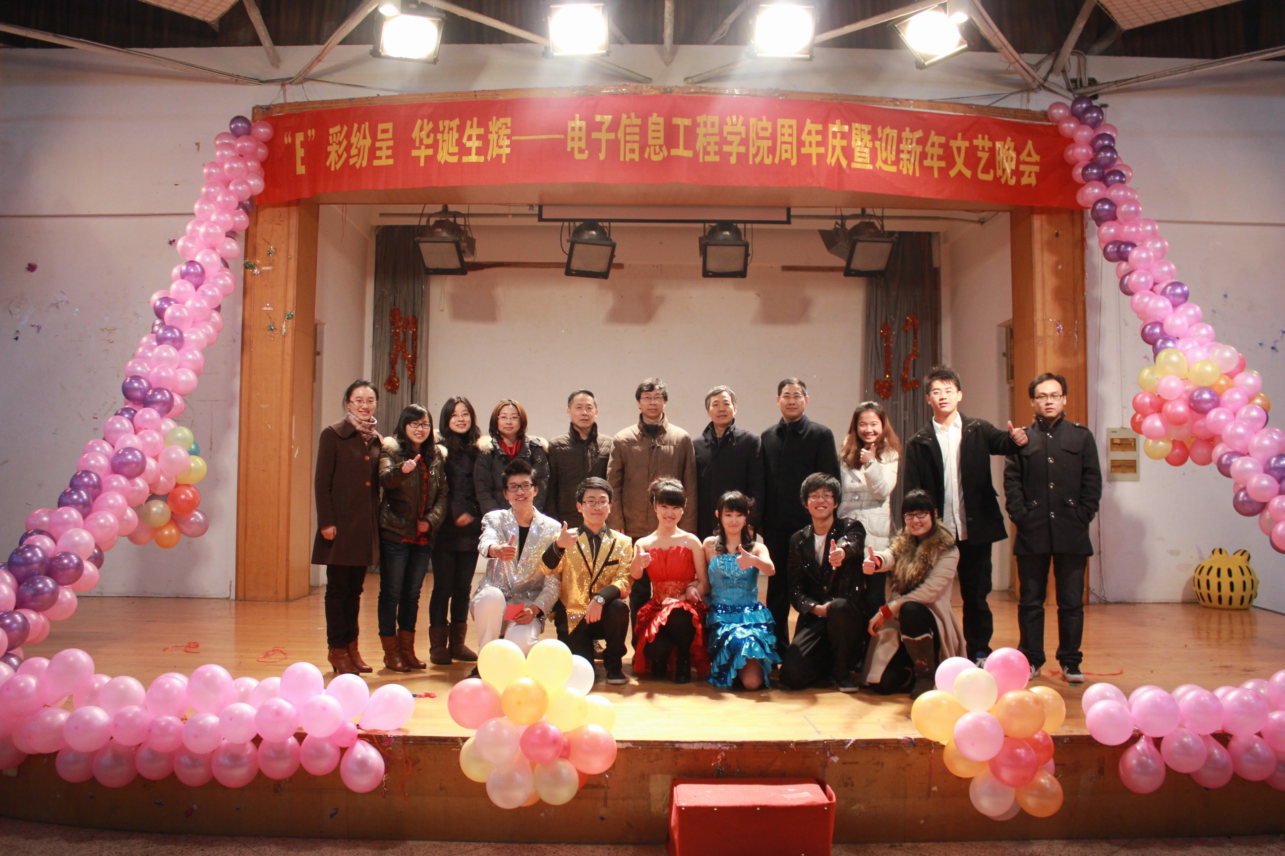 2011年12月29日晚七点,英国365集团公司 “E彩纷呈,华诞生辉”周年庆暨迎新年文艺晚会在将军路校区大学生活动中心隆重举行。学院常务副院长周建江,副院长赵永久、张弓,党委副书记季海群,班主任代表张颖、葛芬,教学办主任谈静艳,团委书记张晓燕以及全体辅导员老师,与400余名同学共同参加了本次晚会。