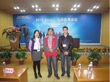 2012年12月7日至9日我院NUAA-ALTERA FPGA联合实验室黎宁、王旭东教师在厦门参加了由ALTERA公司组织的“第10届海峡两岸FPGA教育者及创新设计大赛年会”,我院徐伟学生获得论文大赛年度二等奖(一、二、三奖各一名),王旭东老师获优秀指导老师奖。这是我院第四次派教师参加该会议(2002-上海、2008-北京、2011-重庆、2012-厦门)。海峡两岸与会老师就FPGA教学及创新设计竞赛进行了深入讨论、广泛交流,并组织老师对海峡两岸的年度十价创新设计竞赛作品进行参观、测评和投票。