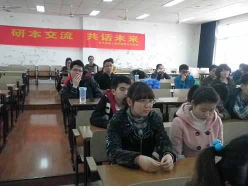 交流会以“研本交流,共话未来”为主题,邀请了我院在读研究生为同学们答疑解惑。电磁场专业刘棋,通信专业张峰,保研的唐姣以及研二张恒龙分别分享了他们在考研或保研路上的经验,如张峰同学,他是从外校考到我院通信专业的,他讲述了自己考研的经历,用他的经验告诉同学们一定要提前做好规划,有计划、有目的地进行复习,而且不要扬长避短,一定要做到各门科目统筹兼顾,这样才不会在考研时被某一门功课拖了后腿。再如保研的唐姣同学,她讲解了保研面试、选择导师以及保研生活方面的一些问题,为准备保研的同学解决了心中的疑问。活动最后一个环节是自由交流,现场气氛热烈。
