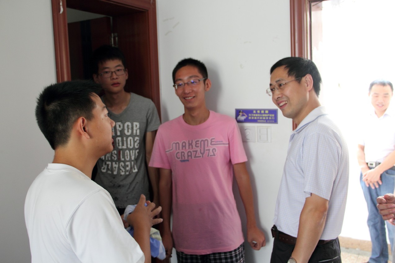 2013年9月4日,我院党委书记冯绍红、常务副院长周建江、党委副书记季海群、副院长刘少斌、赵永久、张弓、党政办主任丁岚来到慧园5栋和博园9栋看望2013级新生,全体辅导员陪同参加。