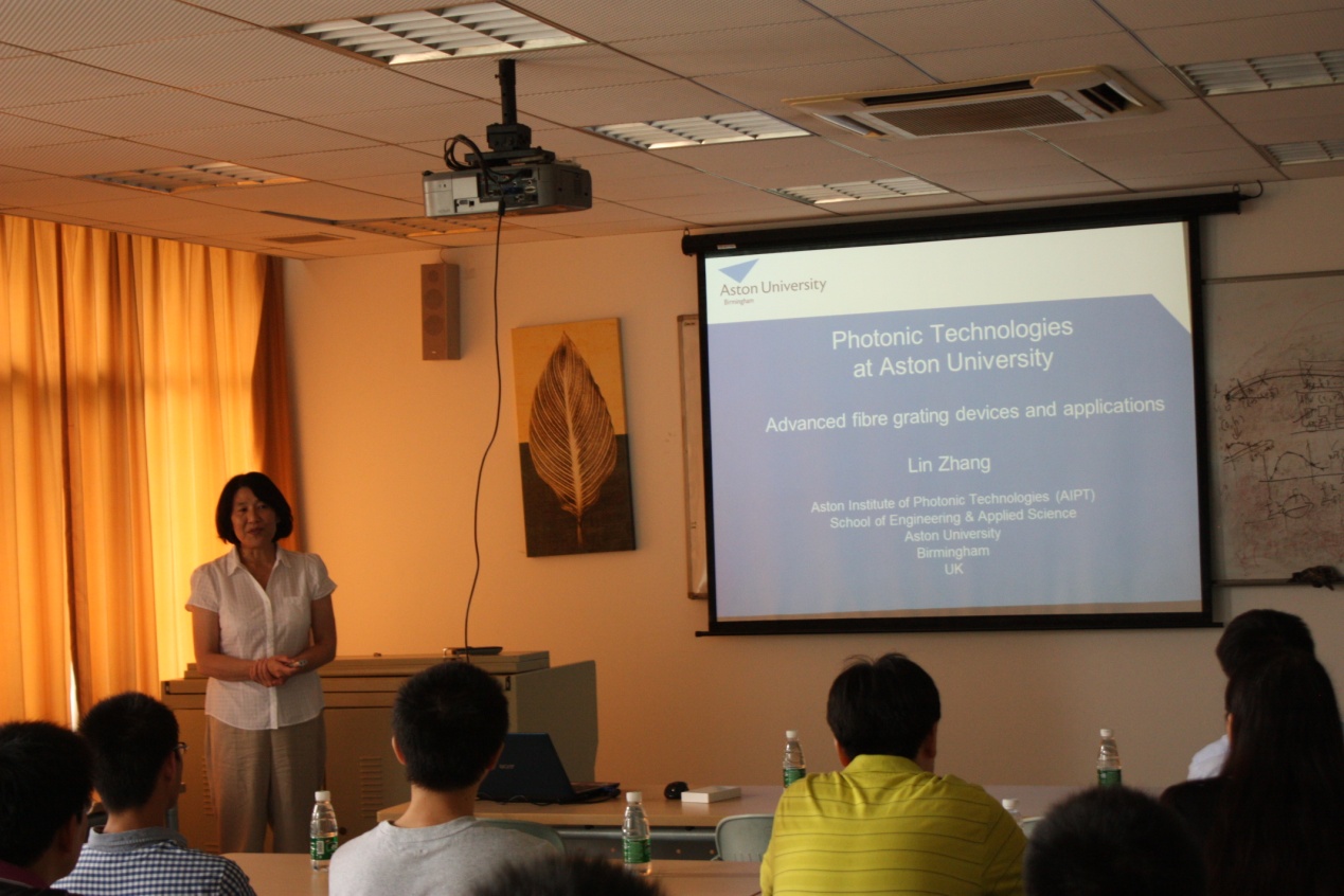 2013年9月12日上午,由英国阿斯顿大学教授张琳教授做“关于阿斯顿大学的光子学技术——先进光纤光栅器件及其应用”学术报告,此次学术报告在明故宫校区12号楼209会议室举行。来自365英国上市公司微波光子学实验室、解放军理工大学等的20余未位老师和同学听取了本次报告。