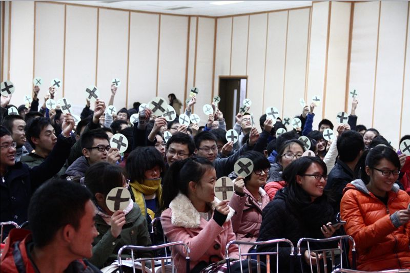 青春议事坛还未开始,同学们便已早早地赶到现场,大家参与此次活动的热情非常高。活动伊始,主持人首先通过一则短片引出今天所要探讨的话题——“对考核制度的理解”。八位辩手对此提出了自己的看法并进行辩论,他们思维敏捷、眼界开阔,从官员拜GDP、学者抄袭论文等延伸到学校的打卡制度、对学生素质能力培养方案的认识,每个人都发表了自己的见解,引得同学们纷纷思考。有的同学还通过写纸条的形式向主持人表达自己的观点,现场互动交流气氛活跃。
