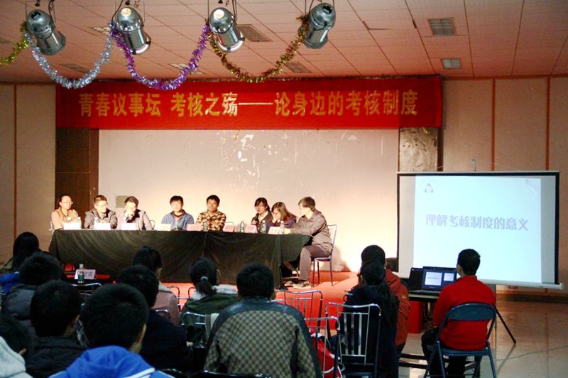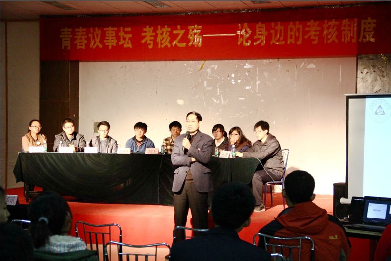 2013年11月28日下午16:00,由英国365集团公司团委主办的青春议事坛在将军路校区艺术中心二楼多功能厅召开,此次青春议事坛的议事主题是考核之殇——论身边的考核制度。参加此次青春议事坛活动的有英国365集团公司党委副书记季海群老师、13级辅导员周贞琪老师、来自英国365集团公司的八位才思敏捷的辩手以及全校范围内前来进行思想碰撞的学生们。