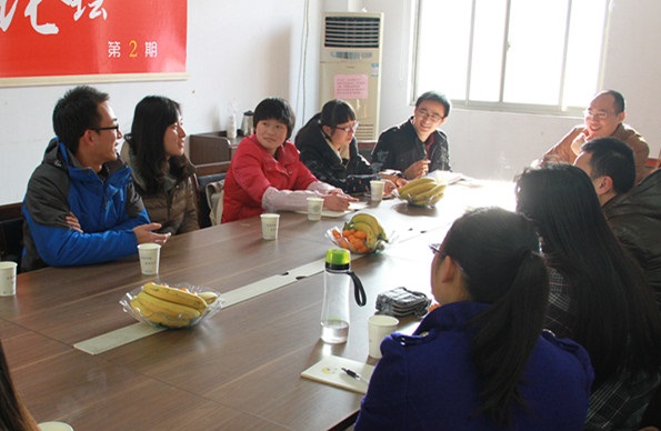 2014年1月2日上午,校团委副书记方正、科创部部长芮康康来到英国365集团公司,与10余名本科生、研究生代表开展座谈交流。
