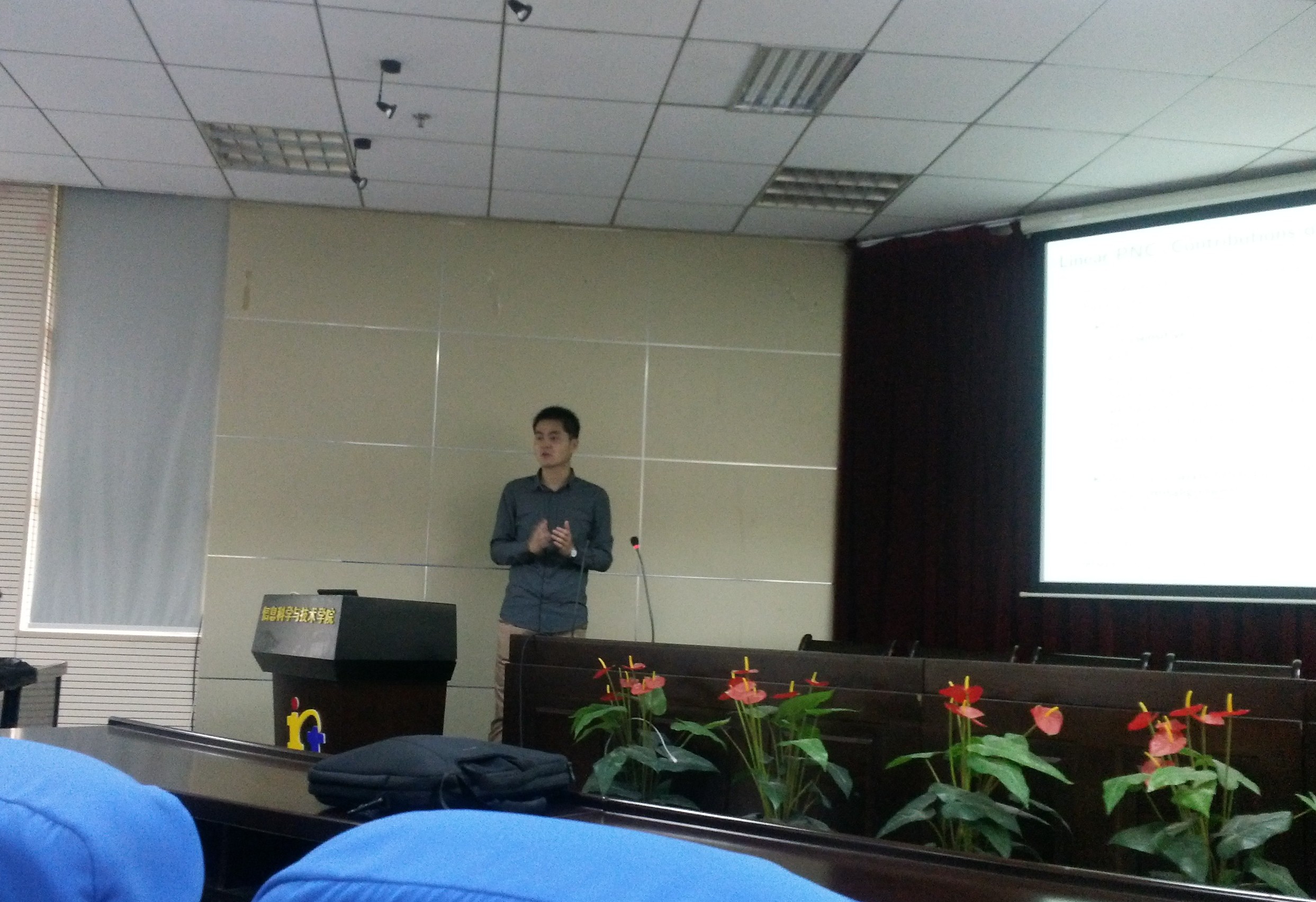 时龙博士就物理层网络编码,从理论到实践进行了深入讲解。并对自己的研究成果进行了介绍和给出具体实例。时龙博士的精彩报告受到了与会师生的热烈欢迎。会后,大家就感兴趣的问题与时龙博士进行了积极的交流与讨论。