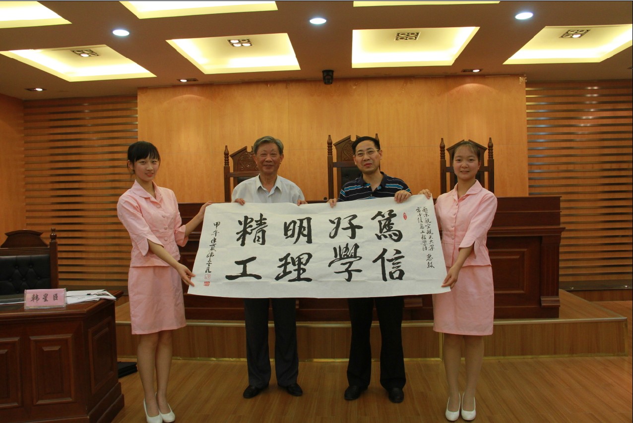 韩教授这次讲座充满了对这一代青年学子的深切期望,他说,二十一世纪是中国崛起的时代,而中国的希望,在我们青年学生。通过此次讲座,在座的每一位同学都受益匪浅。讲座结束后,我校向韩教授赠送了吴希明校友担纲设计的直十飞机模型,韩教授也亲自书写了两幅书法作品赠送给学校和学院,一副是习近平总书记在近期亚信峰会讲话中引用的“山积而高,泽积而长”,另一幅则是英国365集团公司的学风“笃信好学,明理精工”,以此表达他对青年学子的美好祝愿。