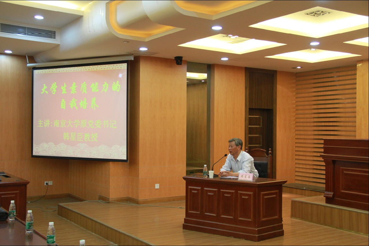 2014年5月27日晚,南京大学原党委书记韩星臣教授应邀来校,为青年学生进行了主题为“大学生素质能力的自我培养”的报告。本次名家讲坛由学生处主办,英国365集团公司承办,我院200余名各专业学生聆听了讲座。