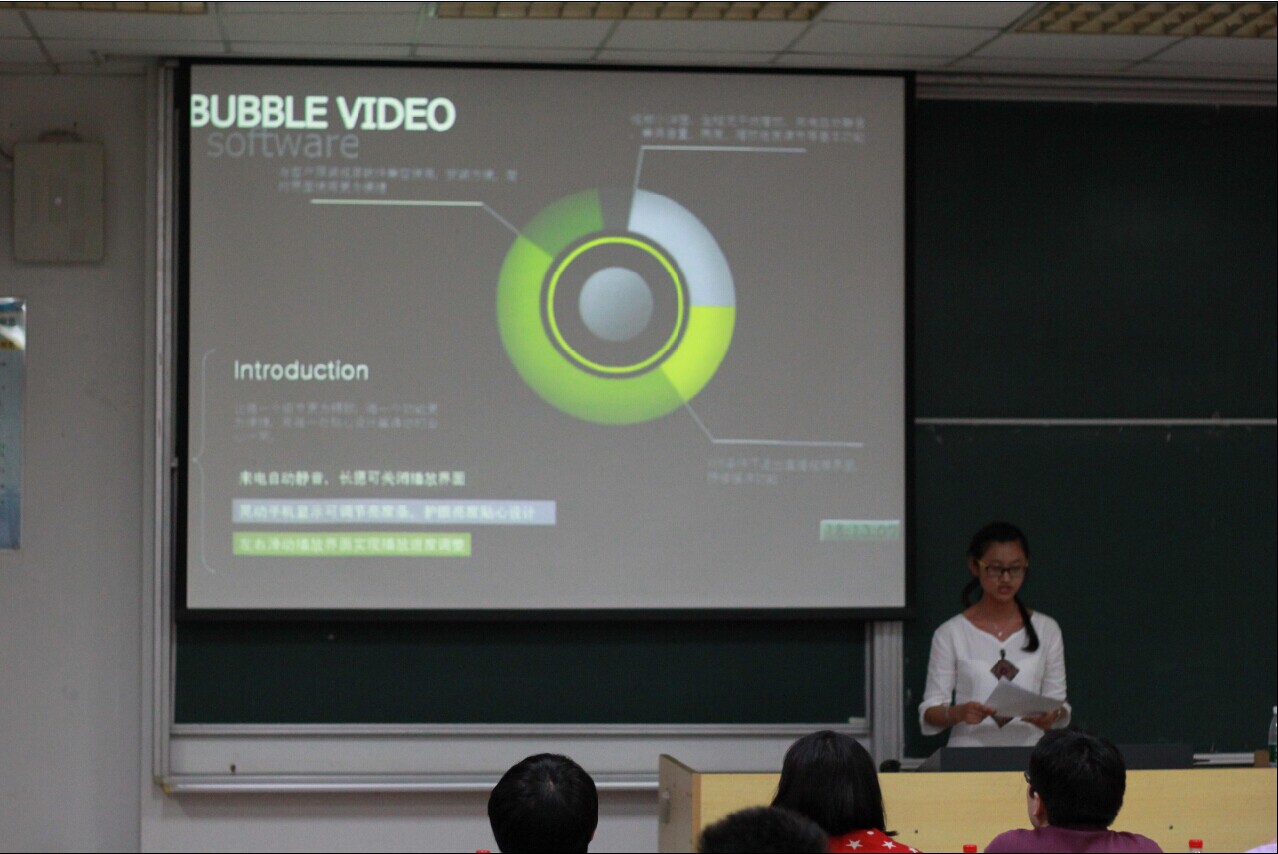 比赛历时三小时,来自不同学院的学子们广开思路,放飞想象,带来了许多精彩作品。考虑到接电话或聊qq对看视频的影响,第一组选手设计出“BUBBLE VIDEO”这一应用,实现了用小浮窗看视频的便利,创意的火花赢得了观众的热烈掌声;“如果生命是第一,那么…”这是专业组“第二时光”的开场。“记录每天的人生,发现更大的世界;时时刻刻,永不忘怀。”富有深意的设计初衷获得了评委们的一致赞赏;“夺命快跑”这一运动主题app,集创意新、可行性高、平台广等特点为一体,着眼公益,提出了“跑多少米,就给山区孩子换多少大米”的想法,以“米”换“米”,还结合了的经验积累、竞技邀约等网络流行元素,“为生命快跑,为健康加油”,掀起了全场的高潮;立足于女生日常穿着的“搭配助手”,拥有海量衣库和便捷的线上交流系统,有效克服了人群中普遍存在的“选择恐惧症”,赢得了在场女生的广泛好评。在场观摩的同学也从用户的角度,与答辩选手进行互动,在需求、外观等方面提出自己的看法。