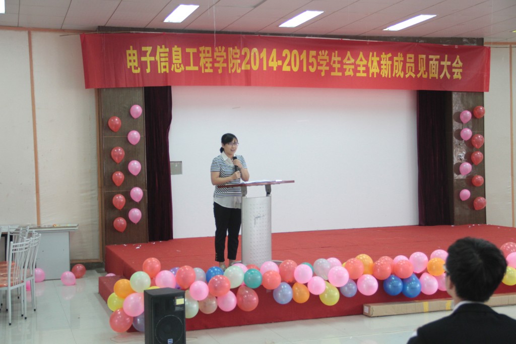 9月27号,我院学生会在艺术中心多功能厅举办2014~2015年新成员见面会。参加本次见面会的有学院团委书记、2014级辅导员张晓燕老师,学生会主席,副主席,各部门成员以及学院团委、科协、青协的组织代表。大会由院学生会副主席胡�主持。