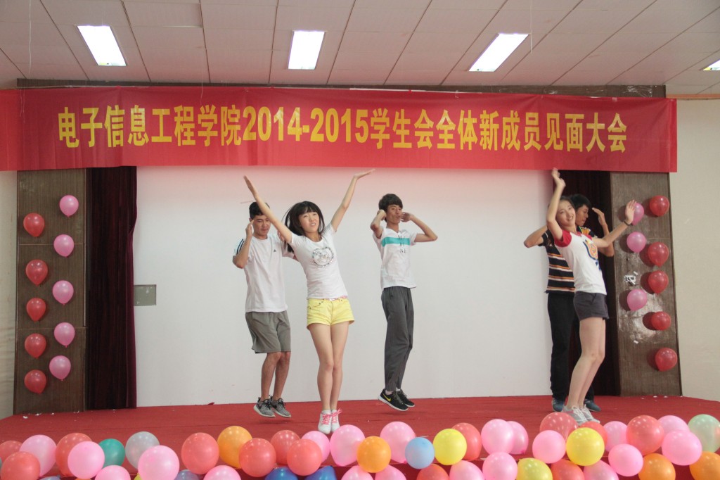 本次见面会为了迎接新成员,各部门还进行了节目表演。文艺部的三位男生演唱了《My Love》,活力十足;生活部将经典的葫芦娃故事进行颠覆性演绎,博得台下观众阵阵欢笑。人资部带来了《歌曲串烧》,唱出了青春的朝气。拥有着出众口才的外联部成员现场举办了一场极富趣味的辩论赛;体育部表演了很有其部门特色的运动走秀,展现出运动之美;学习部也不甘示弱地上演了小品《中国好学生》,妙语连珠引得阵阵欢笑。最后风采艺术部跳起了流行曲目《小苹果》,见面会在欢笑声中落下了帷幕。