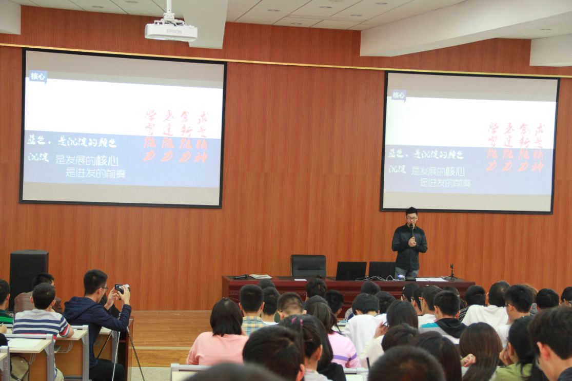 首先,辅导员冷阳从“数说高考”引入,通过数字来回顾大学生们的高中生活,他指出很多同学在度过枯燥乏味的高中生活后,一进入大学便丢失了自己的目标和理想,开始迷惘;通过一位毕业生的四年自述,告诉同学们不同的生活学习态度带来的是截然不同的未来;通过用人单位的角度强调了各方面综合发展才是社会需要的人才。总结出在大学里,如何在大学里发扬自身长处,弥补自身不足,寻找到自身发展的方向是至关重要的。