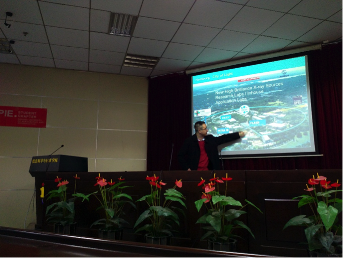 11月12日,德国自由电子激光中心亥姆霍兹青年科学家、 “Ultrafast Fiber Optics”课题组组长常国庆博士在明故宫校区做了题为“Few-cycle optics in laser frequency combs for precision metrology: astro-combs and beyond”的学术报告。英国365集团公司潘时龙教授出席并主持了报告会,英国365集团公司部分老师和研究生参加并聆听了报告。