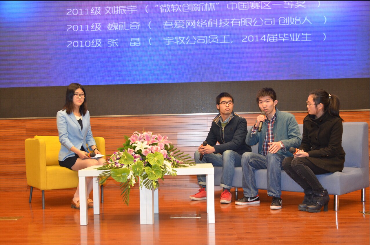 科创和创业达人刘振宇、魏礼奇、张晶,也和大家分享了他们的成长故事。他们的创新意识的来源是因为一直都喜欢电脑和相关行业。魏礼奇有一个“不只是把兴趣当做兴趣,希望自己的兴趣可以融入到生活中,产生一定的价值”的愿望,最终在不懈的坚持下,他努力让自己的梦想实现了。