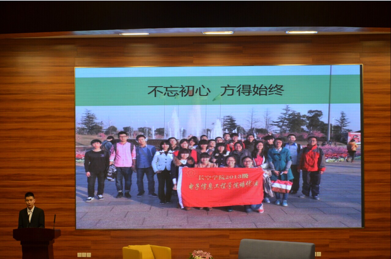2014年12月29日晚,我院2013-2014学年学生素质能力培养成果分享会在将军路校区一号楼四楼报告厅举办。本次分享会的主题是:“万一梦想实现了呢?”出席此次活动嘉宾有航天学院党委书记、我院党委副书记季海群,校团委副书记方正,我院副院长赵永久、院副院长张弓、学生资助管理中心主任赵铮,以及学院各系主任、班主任和全体辅导员。