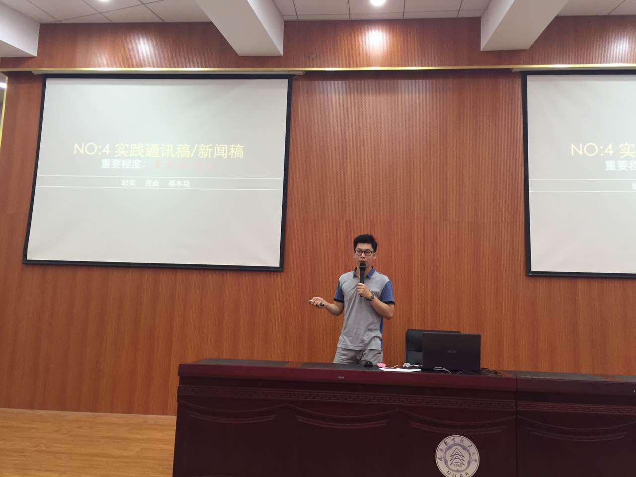 随后,长期立项团队“关爱城市的蒲公英”实践团分享了联络媒体、扩大宣传的经验,以身说法教会同学们如何在宣传过程中充分利用各种媒介;“探讨苗族文化”优秀团队针对团队本身遇到洪流阻挡、语言障碍等问题向同学们传授解决实际问题的经验。 最后,学院五大组织实践团队队长逐一上台发布了今年各组织的实践活动主题、策划和队员要求,“院友零距离”、“寻访历史痕迹,还原无冕英雄”等7个实践团也为同学们提供了丰富多样的实践项目选择。