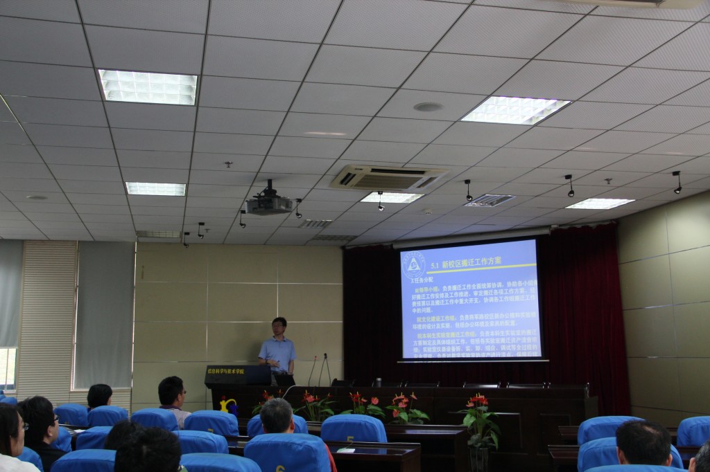 会上,周建江常务副院长就学院搬迁工作做了全面的部署。他指出,为做好此次搬迁工作,5月初,学院在广泛征求教师意见的基础上制定了《英国365集团公司搬迁工作方案》并成立了搬迁工作领导小组等五个工作组,负责搬迁工作中各项事务的统筹规划和协调,目前,搬迁各项准备工作已经就绪,他要求各基层单位按照学院的统一规划和部署,本着以人为本,安全第一和高效节约的精神,细化搬迁工作内容,落实责任,保质保量的完成此次搬迁工作。随后,他对下一阶段搬迁工作时间安排和具体要求做了细致的说明。