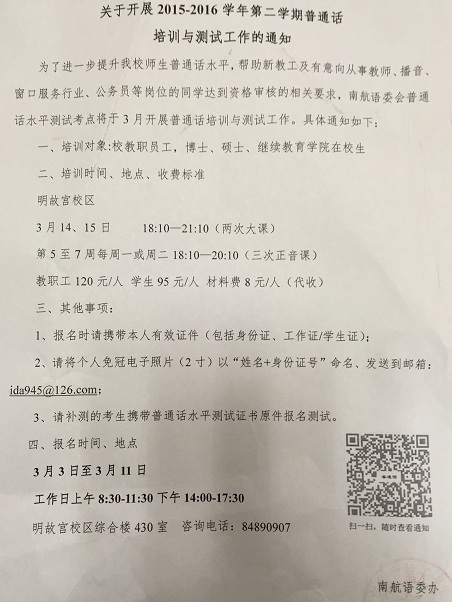 2016年上半年普通话培训与测试通知
