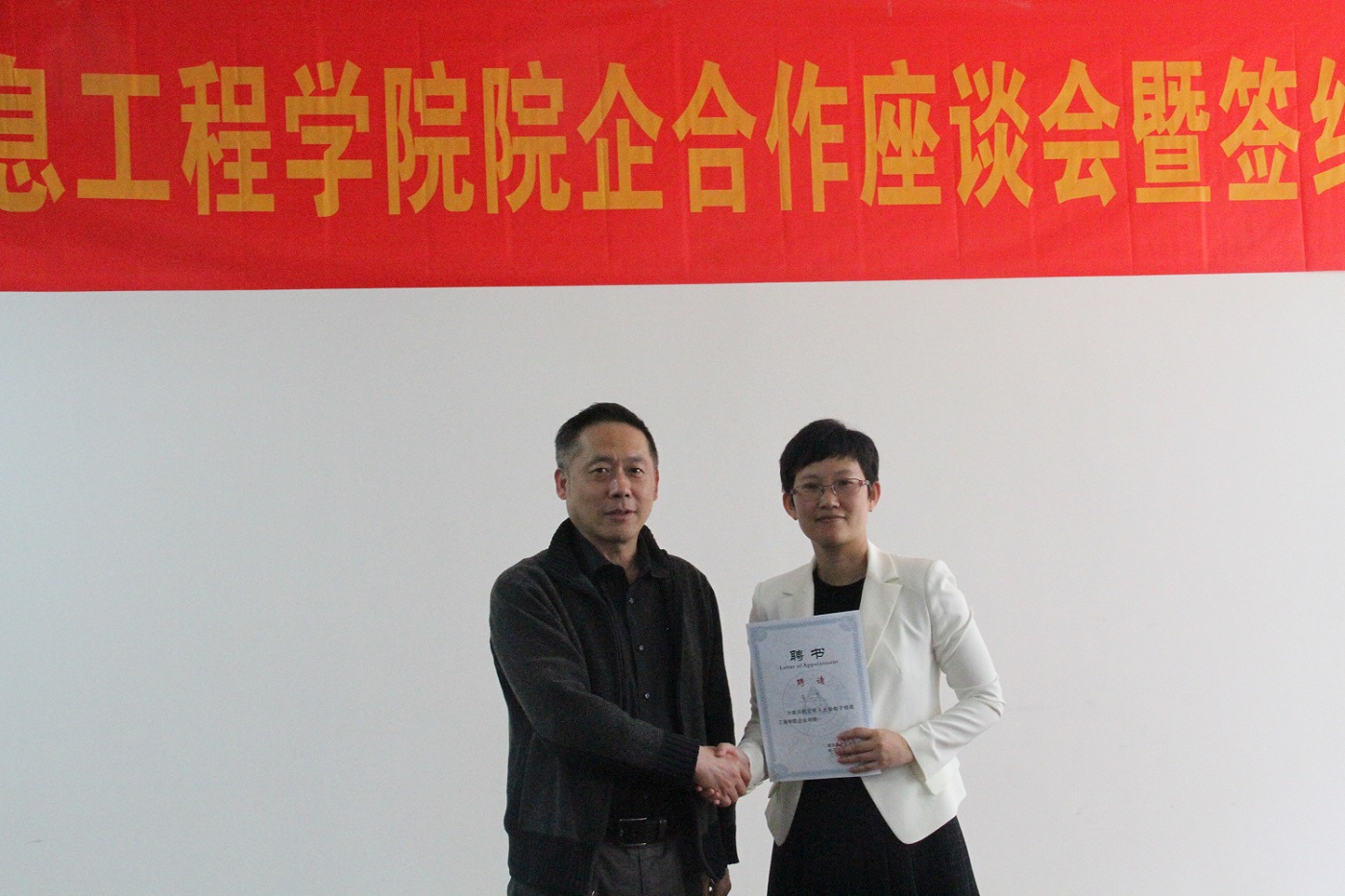 世纪福自动化总监寻铭介绍了公司发展历程及发展战略,展示出了公司强劲的综合实力与美好的发展前景。随后的院企合作座谈中,世纪福表示,在电子信息产业蓬勃发展的今天,人才培养对于企业发展发挥着关键性作用,校企合作为企业提供了一个良好的平台,是企业发展的内在需求。学院指出,学校拥有着良好的科研团队和先进的设备用于钻研新兴技术,但相对而言缺少的便是以实际生产需求为动力的科研引导,同时也希望通过校企合作方式,为本硕学生搭建实习实践平台,拓宽就业渠道,提高学生实践能力,实现双方互利共赢。