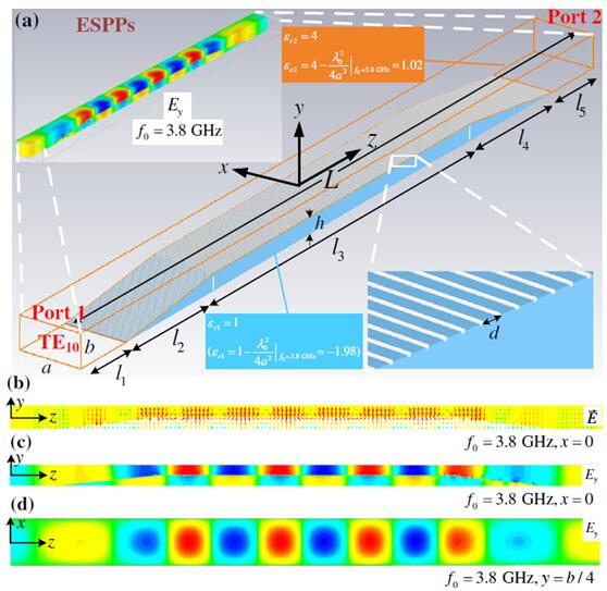 在此项工作中,研究人员另辟蹊径,巧妙地利用金属波导中模式的色散特性和截止特性,建立了等效表面等离激元的物理模型,揭示了等效表面等离激元的色散和传输特性,并在两种普通介质材料的界面上实现了等效表面等离激元的高效激发和超低损耗传输。该工作为低频段人工表面等离激元提供了一个全新思路和实现手段,并有望应用于微波和太赫兹频段的滤波器、谐振器和高灵敏度传感器中。