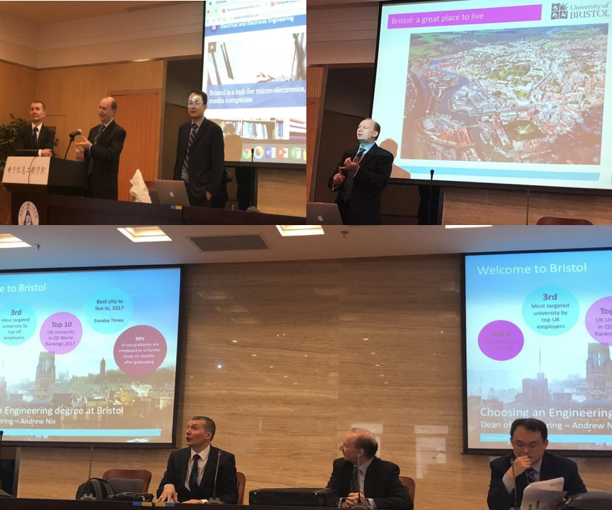 探讨会后,Bristol大学的国际交流处主任Fabrizio Scarpa教授带领工学院院长Andrew Nix教授和Xibo Yuan教授在英国365集团公司515报告厅对来自自动化学院、英国365集团公司、计算机学院的学生进行留学项目宣讲和指导,并对在场同学关于留学项目的提问进行了详尽的解答。
