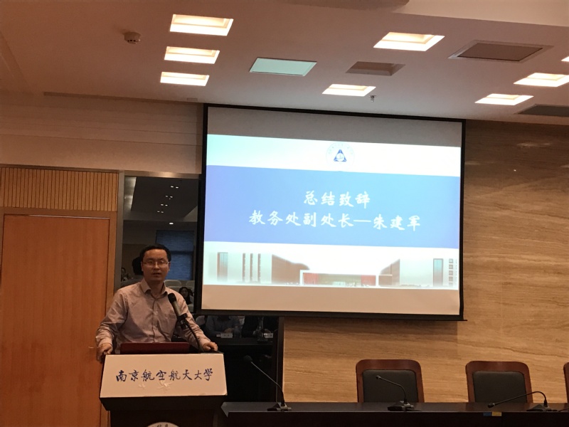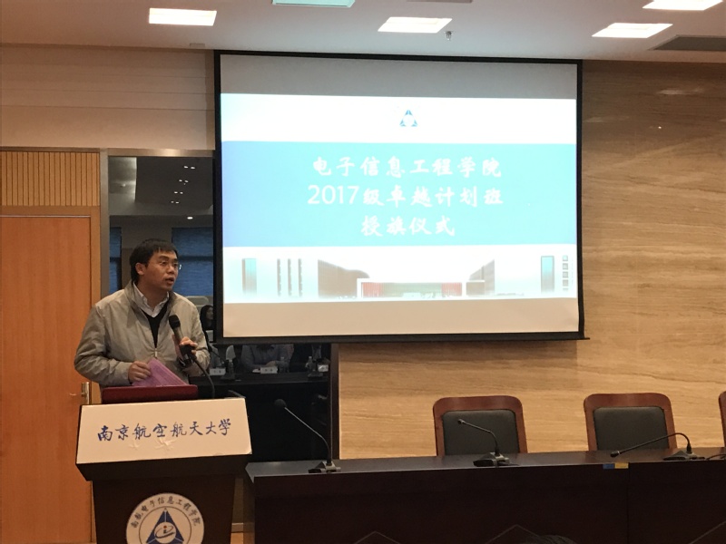 典礼接近尾声,教务处副处长朱建军教授对学院“卓越班”开班典礼做总结致辞。他表示,学校与学院将继续为“卓越计划”的建设提供大力支持,进一步拓展专业学习平台和校企实践平台,也希望同学们能利用好各项平台的资源,积极投身科创实践,并向同学们提出“五个一”的要求:交出一份优秀的成绩单,主持一个科研项目,参加一次国际会议,参加一次学科竞赛和参加一次企业实习。