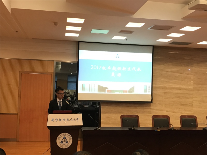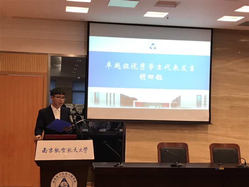 卓越工程师班自2012年开班至今已培养出众多优秀学生,学院2014级“卓越班”优秀学生代表、本院在读研究生、师从“长江学者”吴启晖教授的胡田钰同学向同学们分享了他在“卓越班”的学习经验,并向同学们介绍了“卓越计划”中企业课程、职业生涯规划的重要性;2017级“卓越班”新生代表戴源也从自身经历出发,表明学习决心,并结合现阶段学习中的感受和国家科技发展形势,表示“追求卓越、志在超越”的目标一直在激励着同学们克服困难,迎接挑战,不断创新。
