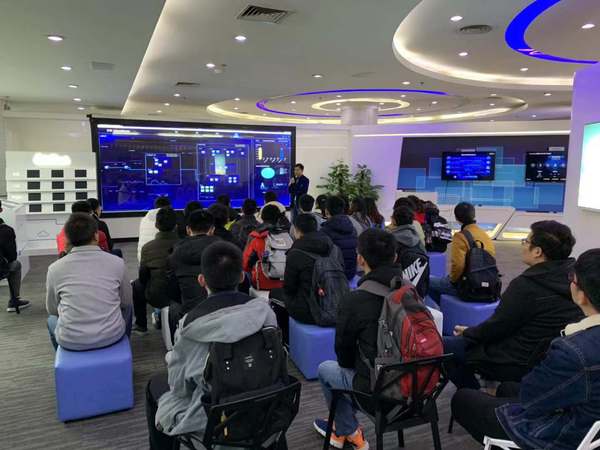 活动伊始,在王克矿经理的带领下学生进入展厅,最先映入眼帘的是荣誉墙,讲解人简短地介绍了近年来中兴通讯在国内外斩获的重大奖项,而后介绍了5G技术最前沿的发展现状、5G 技术相较传统4G的三大优势以及未来通信行业的发展趋势,并现场利用机器人进行时延演示。在此之后又进入云计算机房亲身感受了机器轰鸣运转时的独特魅力。