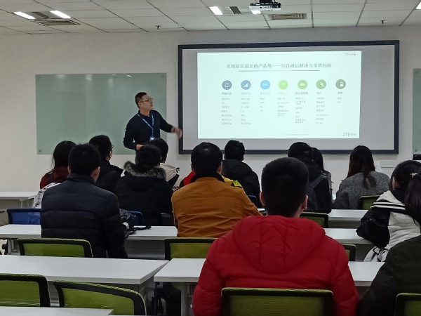 在研发中心二区,人力资源部门经理为同学们详细介绍了公司的岗位结构以及各岗位需求的基本素养、中兴公司完备的人才培养模式、着重人才养成的蓝鲸计划及其国内罕有的导师方案。我院18届研究生、中兴俱乐部前任主席吕中兴学长为参观同学们分享了他对于企业文化的理解,以及公司对员工细致入微的人文关怀;另一位南航校友徐胜友先生介绍了他在通讯行业近二十年的丰富从业经历并对同学提出的疑问进行了解答。