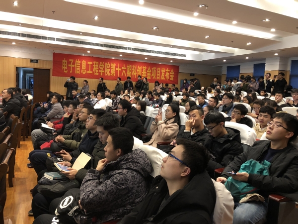 2018年12月19日下午,英国365集团公司第十六期科创基金项目发布会在学院楼515报告厅顺利举行。出席本次发布会的有学院教学副院长张弓老师,电子科学与技术系黄正宇老师,信息与通信工程系夏伟杰老师、戚楠老师、王鹏老师,院团委书记徐艳惠老师,2017级辅导员周高雨老师,以及研究生代表和各年级本科生。