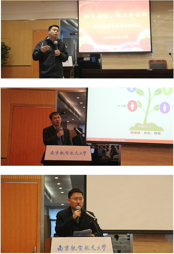 接着,副院长雷磊、潘时龙、刘伟强分别围绕分管工作对2019年重点工作做了补充汇报。党委书记聂东林宣布了学院院长助理、国际交流与合作办公室主任和系级班子的任命,新任的院长助理,系、办主任分别做了简短发言。