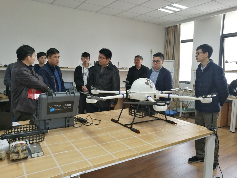吴院长首先对学院以及实验室建设情况、团队、研究方向、今后的规划等方面进行了介绍,之后,王正、徐帆、董超、黄洋、贺荣等老师依次介绍了频谱数据挖掘与态势感知、图像处理、车联网、无人机查找“黑广播”、频谱管控链抗干扰通信系统等内容。陈总一行也对750厂研制的一款工控机进行了介绍,并表示该工控机经过剪裁之后可以满足低功耗的无人机应用需求。