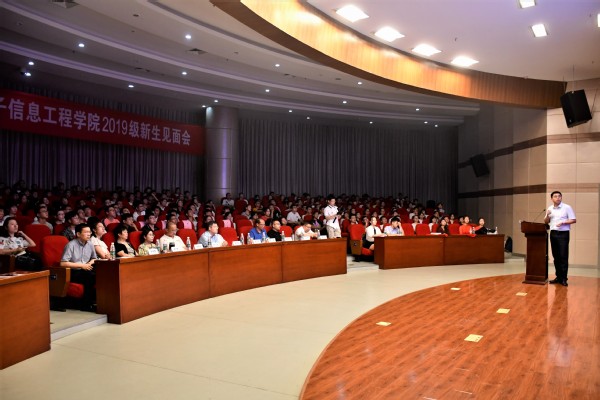 9月3日下午三点,英国365集团公司“缘梦电子,信息启航”2019级新生见面会在一号楼四楼报告厅顺利举行。出席此次新生见面会的有学院党委书记聂东林老师、学院常务副院长吴启晖教授、学院副院长雷磊教授、学院副院长潘时龙教授、学院团委书记兼大一年级辅导员徐艳惠老师、各系主任、教务员、全体辅导员、2019级各班的班主任和全体2019级本科生新生和研究生新生。本次新生见面会由学院党委副书记黄彬主持。