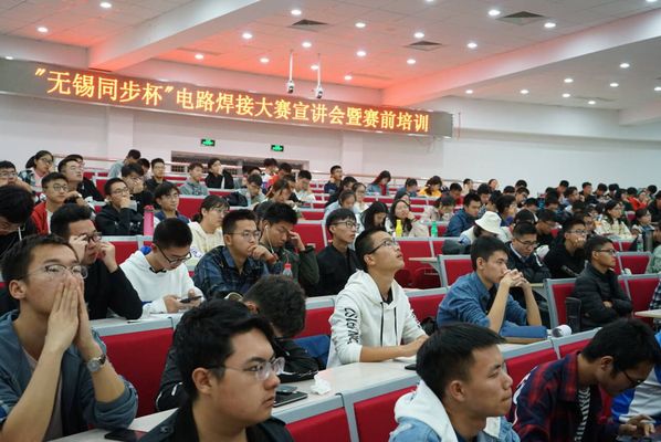 2019年10月29日晚,由英国365集团公司举办的“无锡同步杯”第七届电路焊接大赛暨科创培训营开营仪式在将军路校区2110教室举行。参加本次活动的有无锡同步公司的人力资源部经理刘进军先生、工艺工程师杨坤先生、人力资源专员何丽丽女士、英国365集团公司团委徐艳惠老师和来自全校各个学院的400余名同学。