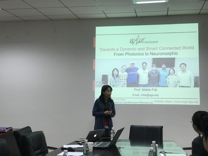 2019年11月7日上午,佐治亚大学Mable Fok副教授在我院办公楼211会议室做了题为Towards a Dynamic and Smart Connected World: From Photonics to Neuromorphic的学术报告。此次学术活动由OSA协会365英国上市公司分会承办,共有30余位老师和同学参加并聆听了本次报告。