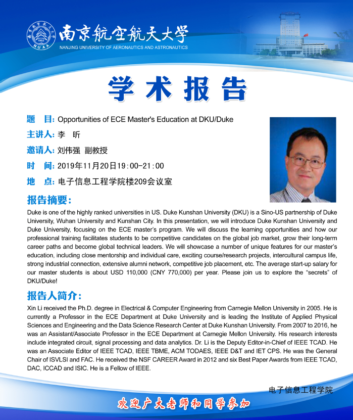 学术报告会——Opportunities of ECE Master's Education at DKU/Duke