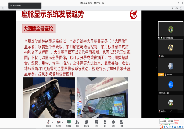 中国航空无线电电子研究所副总工程师吴伯春在飞机座舱显示控制设计和实现领域有着丰富的工作实践经验。本次报告,副总工程师吴伯春分享了航空人从无到有,从弱到强的奋斗之路。他首先从飞机座舱显控系统的发展史出发,讲解了飞机座舱显控系统的发展演变过程,对各种类型的飞行仪表系统及航电系统作了比较和分析。其次,从技术应用层面为大家深度剖析了飞机座舱显控系统的组成、原理以及核心技术。最后,副总工程师吴伯春结合自己多年的工作经验向大家介绍了飞行器座舱显控系统的未来发展趋势。报告内容深入浅出,让参会师生对飞机座舱显控系统有了深刻的认识和理解。
