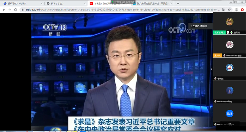 会议伊始,支部书记周高雨同志带领全体成员学习了习近平总书记在中央政治局常委会会议研究应对新型冠状病毒肺炎疫情工作时的讲话,观看了学习视频并进行相应的解读。