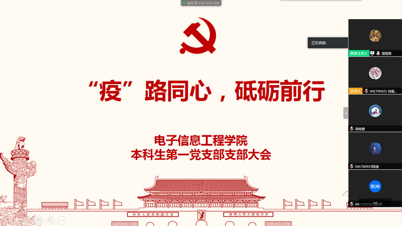 新冠肺炎疫情发生后,在以习近平同志为核心的党中央坚强领导下,举国上下同时间赛跑、与病魔较量,党员干部冲锋在前,与人民群众心手相连,共渡难关。在这个特殊时期,为扎实做好新形势下党员的教育管理工作,3月29日下午,英国365集团公司本科生第一党支部“疫”路同心线上支部大会顺利举行,党支部书记周高雨及全体支部成员通过视频线上参会。