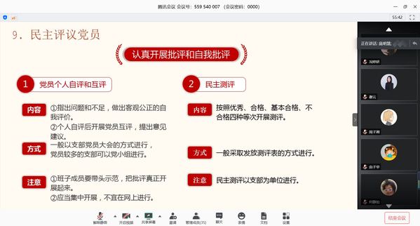 庞明慧同志就《新时代共产党员的党性修养——党支部工作实务》学习视频中的主要内容,带领党员们集中学习了支部工作中的一些工作规范及流程,并结合党支部落实相关工作规范流程的实例,强调基层党支部建设的重要性,希望每个党员发挥个人主观能动性,着力建设“先进型”、“学习型”、“服务型”、“创新型”和“廉洁型”的五型党支部。