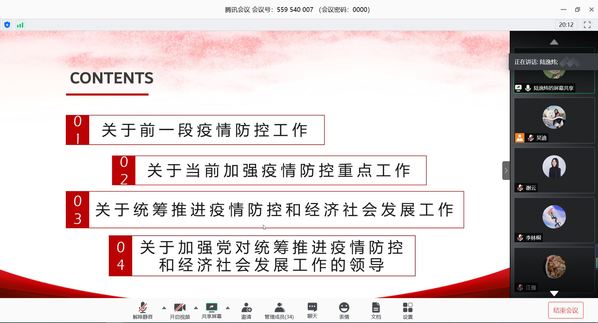 在前期党员个人自学的基础上,此次党支部集中学习首先由赖欣、陆逸炜同志带领大家学习了习近平总书记在统筹推进新冠肺炎疫情防控和经济社会发展工作部署会议上的讲话,并就讲话重点内容进行深入分析,总结了在疫情防控期间党和国家所作的努力,号召支部党员共同努力,抱着必胜的信心参与疫情防控工作。