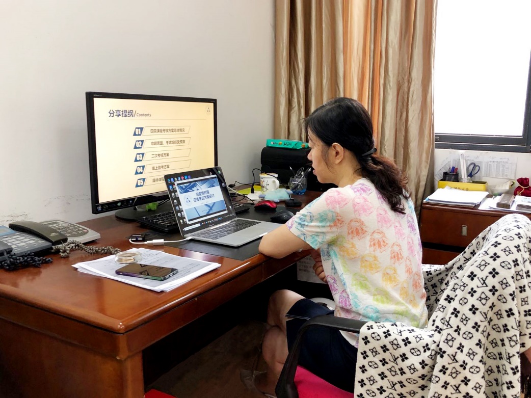 6月12日,教务处举办了后疫情时代课程在线考试方案线上研讨会,我院课程组代表黎宁老师作为主讲人出席会议,会议由教务处副处长王敬东主持。来自全校各个学院和教学单位的70余