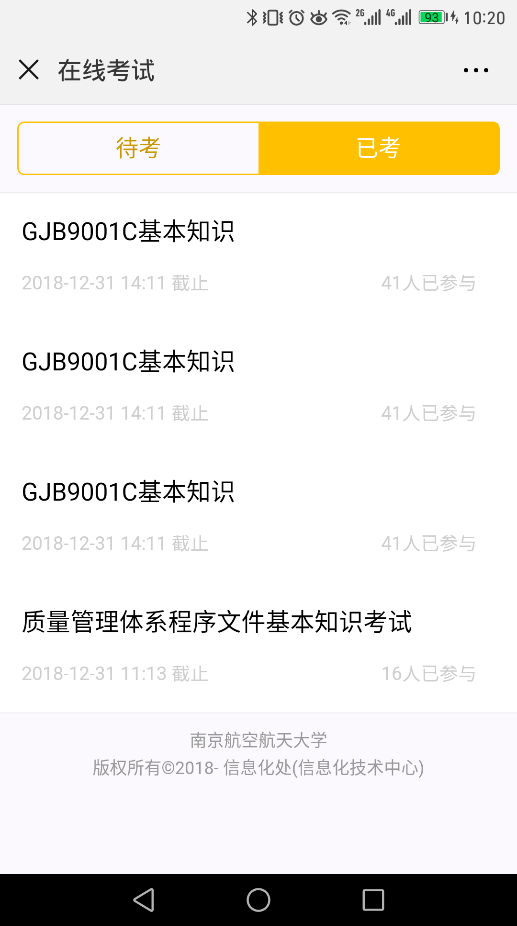 五、在“已考”区,可查看参与的考试情况。