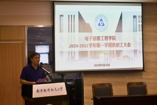 9月28日,电子工程学院在学院515报告厅召开新学期教职工大会,全体教职工参会。会议由学院党委书记聂东林主持。