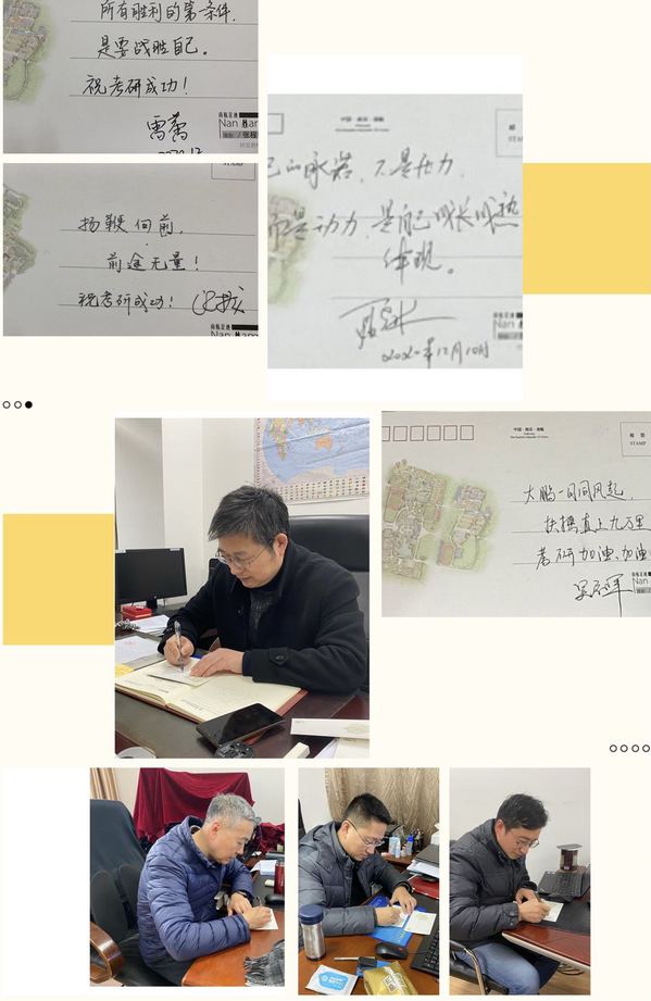 最特别的是,每一位考研学子都收到了由学院全体领导班子、教授委员会、专业教师及辅导员们同学们精心准备的手写明信片,上面都是送给每位学子的专属祝福语。