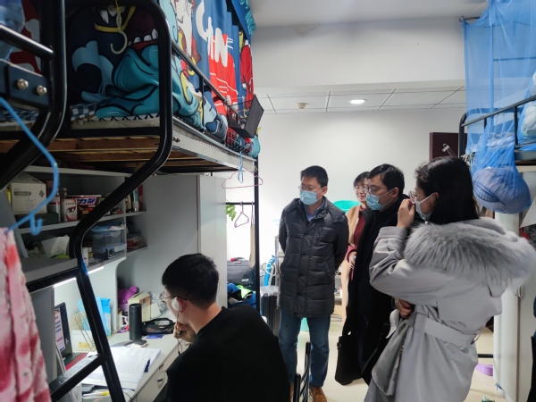 学院分管领导与各年级辅导员也一同走进了各年级学生宿舍,了解学生线上学习情况,对于学生返校后的状态及线上学习是否顺利进行了详细了解,学生也对学院领导老师的亲切慰问以及学校信息化处及后勤中心提供的平台支撑表示感谢。