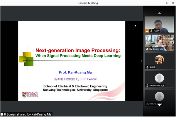 2021年5月7日,来自新加坡南洋理工大学的MA Kai-Kuang教授(马凯光,新加坡工程院院士,IEEE Fellow)应邀为我院师生做了题为“Next-Generation Image Processing: When Signal Processing Meets Deep Learning”的线上学术报告。会议由吴启晖教授主持,220余名师生通过腾讯会议线上参会的方式聆听了报告。