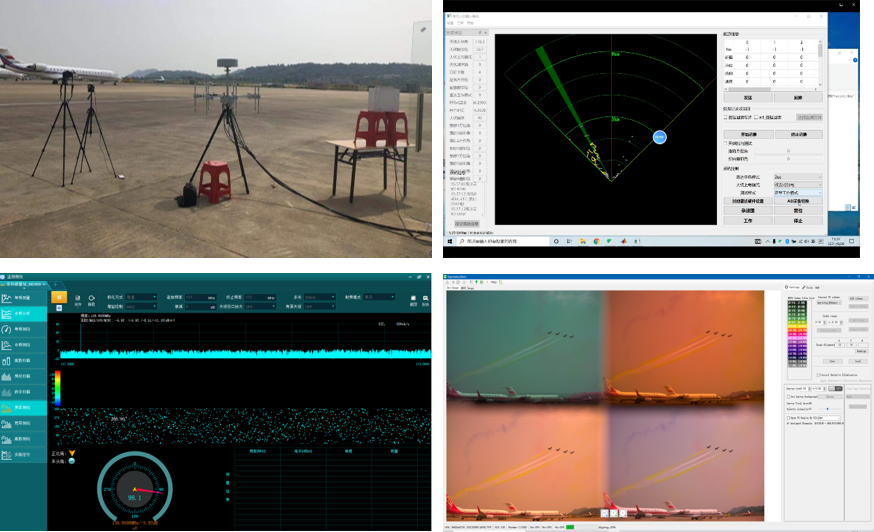 航展举办期间,频谱认知团队在航展核心区域架设了自主研制的“多域探测与信息融合系统”,该系统由雷达、频谱阵列和多光谱三个部分组成,获取了航展空域的雷达、频谱、视觉图像等数据,通过异构组网传输技术将各类数据实时可靠地汇聚到融合中心,再利用频谱态势补全、多域信息融合与辐射源定位等技术,准确还原航展空域的频谱态势并对可能造成影响的非法用频设备、黑飞无人机等进行了发现与定位,有效支持了航展期间的空域安全管理和频谱使用秩序管理。