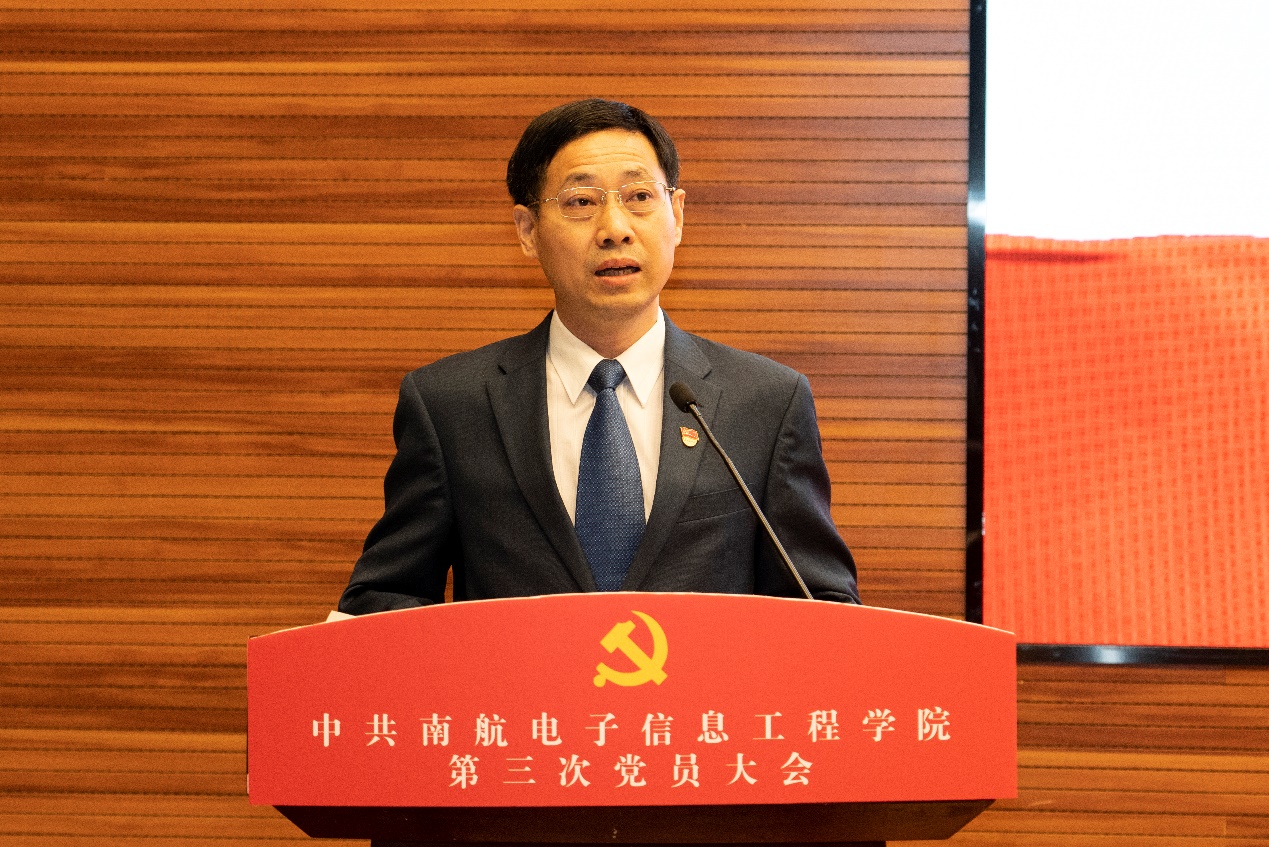 大会听取了学院党委书记季海群所作的题为《跨越发展,开放融合,为高质量建设空天特色世界一流电子信息学院努力奋斗》工作报告,报告全面回顾了学院党委2016年以来在全面从严治党、人才培养、师资队伍建设、学科发展、科学研究、国际合作、学院治理等方面取得的成绩。从国际大势、国家战略、行业发展、学校部署及学院方位等多方面分析研判了学院发展面临的机遇与挑战,剖析了工作中存在的问题与不足,进一步明确了下一届党委工作的目标任务和思路举措。